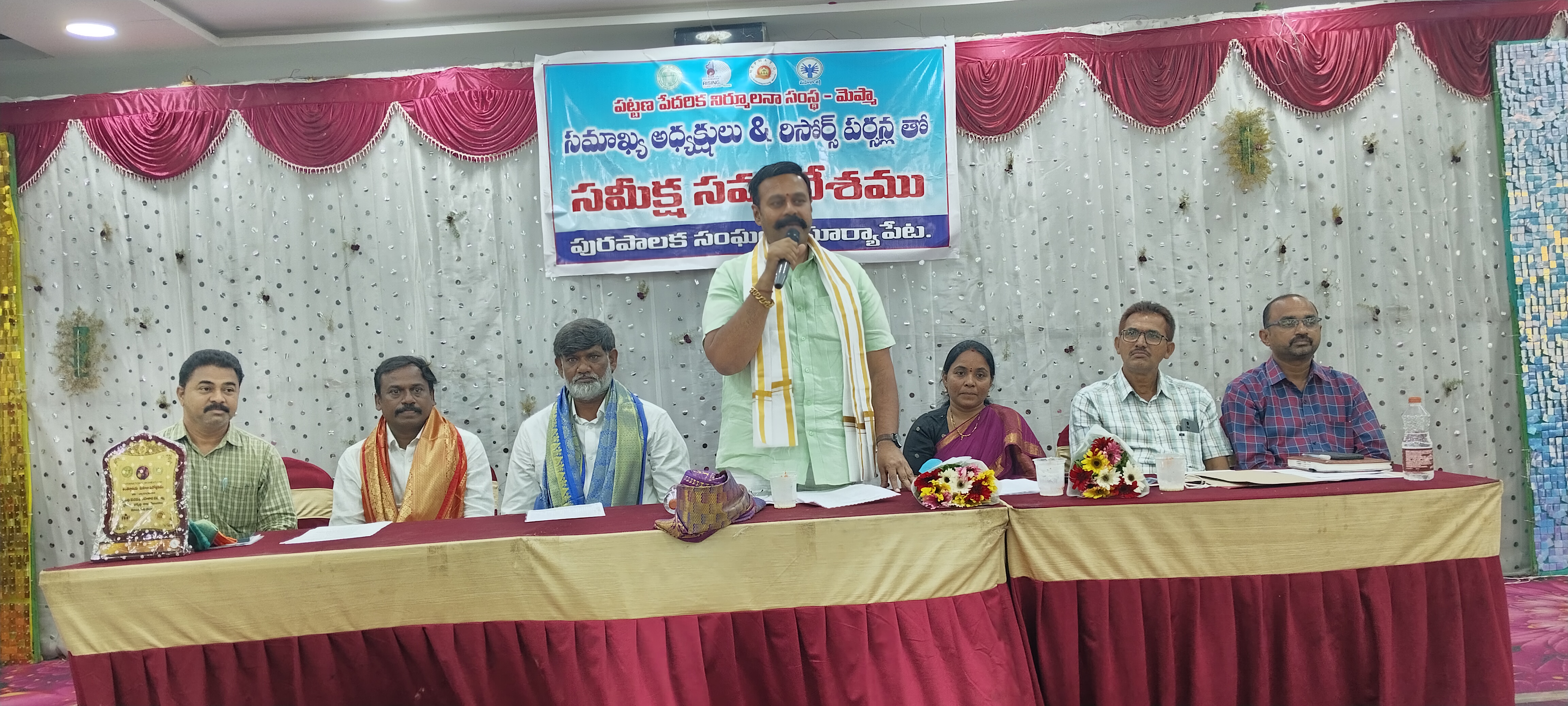 సూర్యాపేట పట్టణంలోని స్టార్ బ్యాంకేట్ హాల్ లో పట్టణ పేదరిక నిర్ములన సంస్థ మెప్మా, సమాఖ్య అధ్యక్షులు, రిసోర్స్ పర్సన్ల తో ఏర్పాటు చేసిన సమీక్ష సమావేశానికి ముఖ్య అతిథులుగా హాజరై మాట్లాడారు.తెలుగు రాష్ట్రాల రాజధానుల మద్యన ఉన్న సూర్యాపేట 25 వేల మంది మహిళలు భాగస్వాములన్నారు. పని తీరులు కొంత అలసత్వం కనబడుతుంది.16 సంవత్సరల క్రితమే అవార్డు పొందాం ఇప్పుడు కూడా అవార్డు వచ్చేలా పని చేయాలి.పని పట్లభయం లేదా భక్తి ఉండాలి.కాంగ్రెస్ పై ప్రజలు నమ్మకంతో అధికారం కట్టపెట్టారు. వారి నిత్యం అందుబాటులో ఉంటూ సేవలు అందించాల్సిన బాధ్యత ఉంది.ప్రభుత్వం ఆర్థిక ఇబ్బందిలో ఉన్నా మహిళా అభివృద్ధికి సీఎం రేవంత్ రెడ్డి కృషి చేస్తున్నారు.క్రమ శిక్షణ లోపాన్ని సరి చేసుకొని పనితీరు మెరుగు పరచుకొని ఆదర్శంగా ఉండాలి.